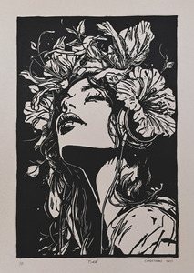 2026Fleur is een unieke, volledig handgedrukte grafiek in het formaat 70 × 140 cm.